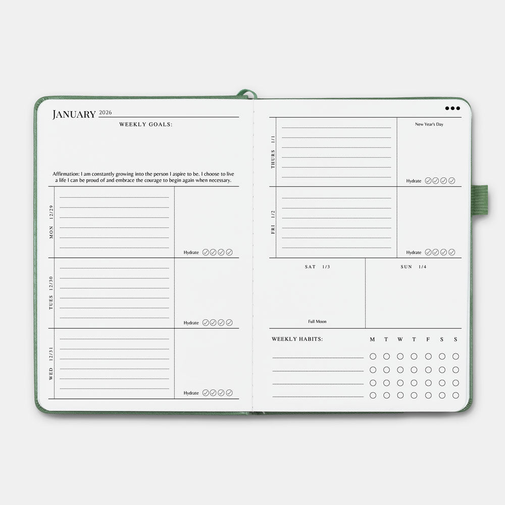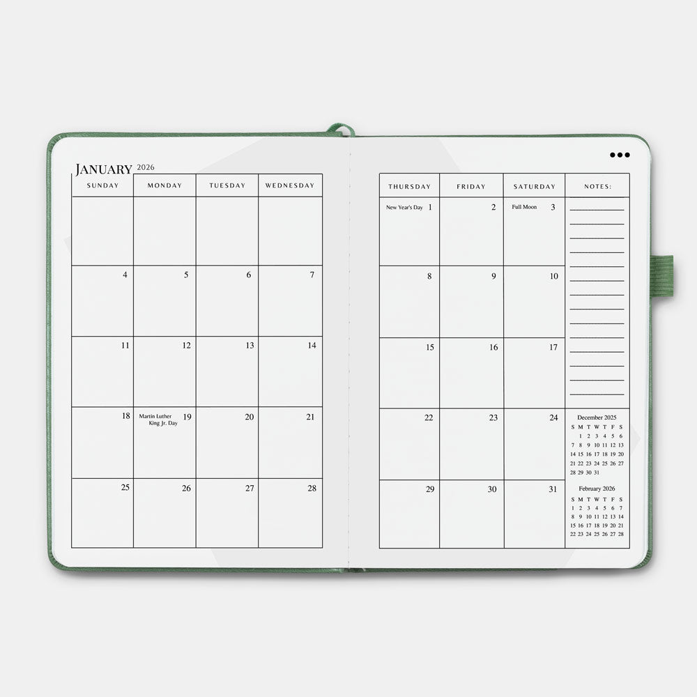 - Complete 2026 calendar, including weekly, monthly, and yearly planning layouts